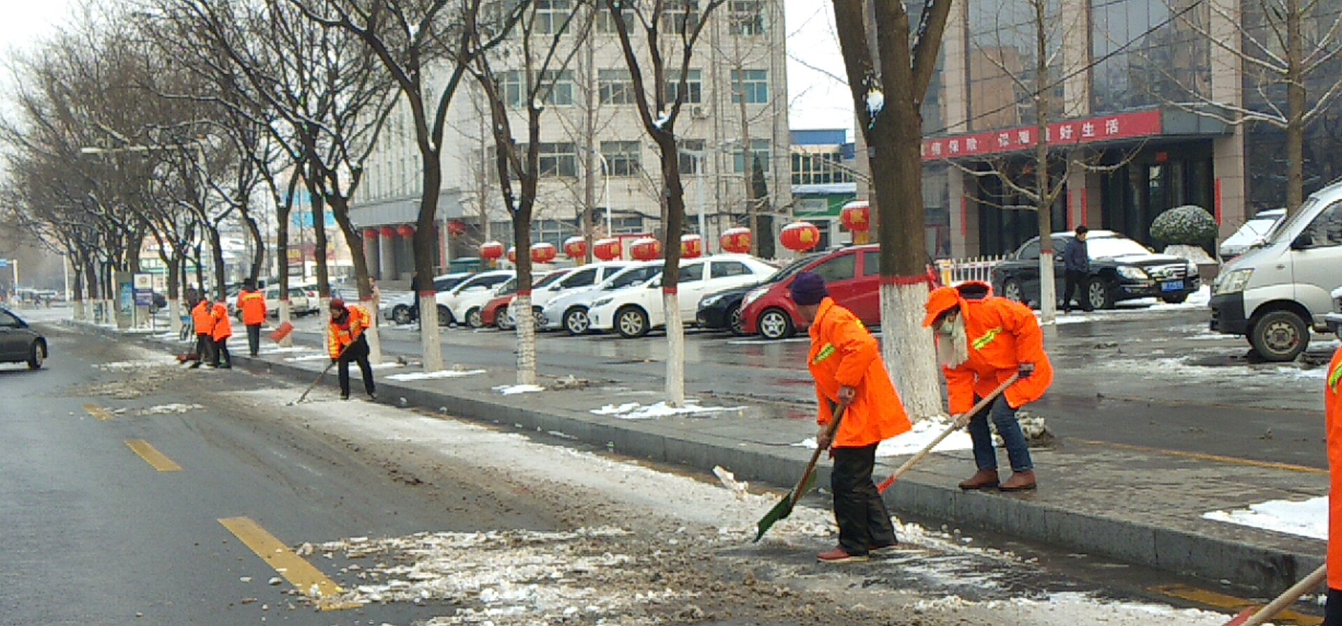 新年的第一場大雪,到處銀裝素裹,扮美了整個晉城,但大雪帶來美景的同時,也給大家的出行帶來了不便。為保障大雪期間出行安全,潔霸公司各保潔點的負責(zé)人積極組織員工進行主干道積雪清掃,在除雪過程中,雖然天氣寒冷,但大家除雪的熱情卻不減,大家有的撒融雪劑,有的 清掃積雪,有的用鏟子除冰,奏響鏟雪破冰進行曲。