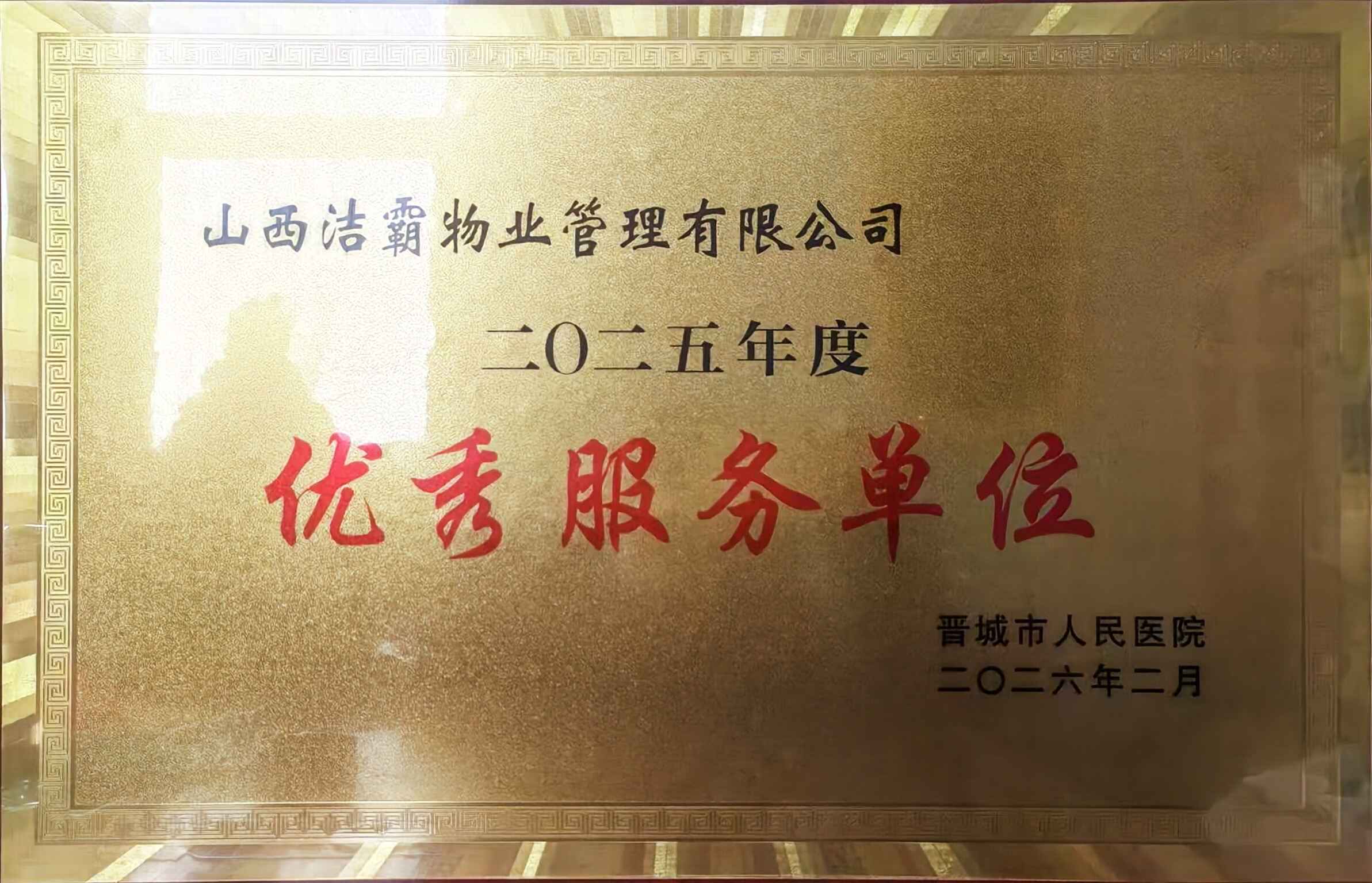 2月8日下午,晉城市人民醫(yī)院隆重召開第三屆職工代表大會第五次會議暨2026年工作會議,全面總結(jié)2025年發(fā)展成果,系統(tǒng)部署2026年重點任務(wù),并對為醫(yī)院發(fā)展做出突出貢獻(xiàn)的先進(jìn)集體與個人進(jìn)行表彰。山西潔霸物業(yè)管理有限公司憑借優(yōu)質(zhì)服務(wù)表現(xiàn),榮獲晉城市人民醫(yī)院2025年度“優(yōu)秀服務(wù)單位”稱號。